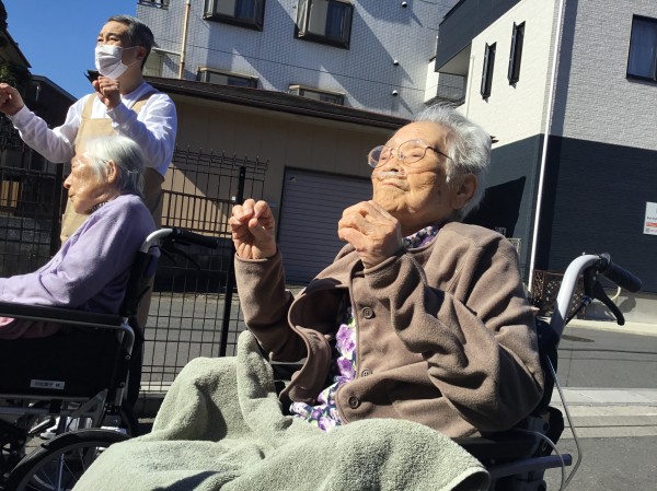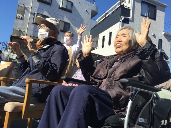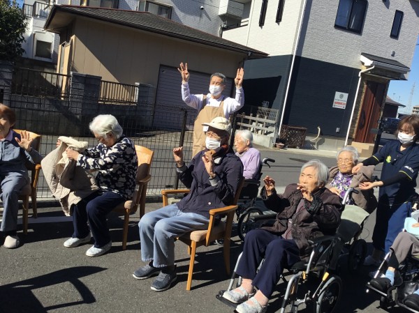 さすがに二月、日掛けは寒く出来るだけ日向を探し体操をしました!