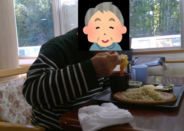 10日(月)の昼食に、食事(蕎麦)レクがありました。