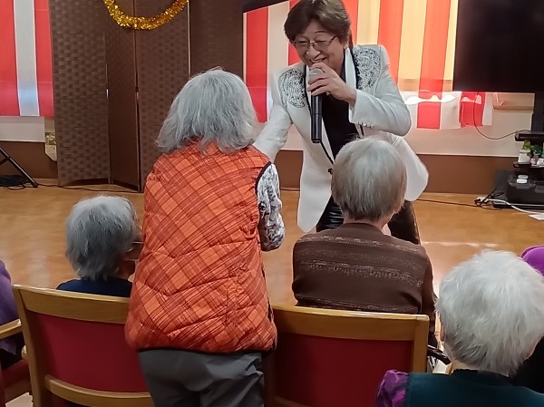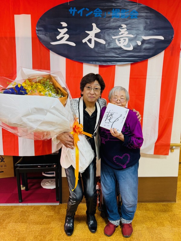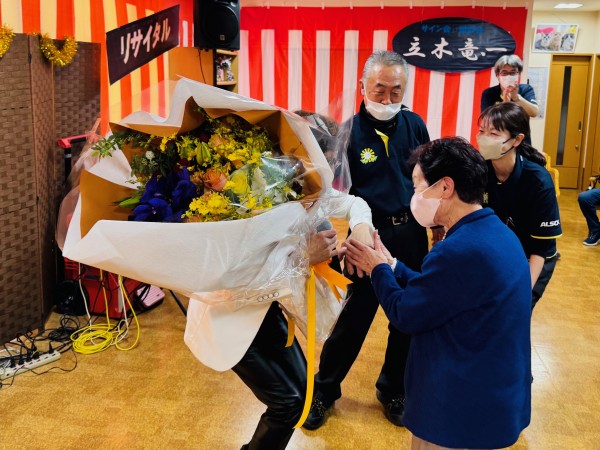 立木竜、一さんのオリジナル曲は勿論、北島三郎さんの「まつり」等親しみの深い曲も披露して下さいました。中に「今日はお母さん(女性)が多いから鳥羽一郎さんの「海の匂いのお母さん」を選曲してきました」とのお話があり、お客様を第一に考えて下さっている姿勢に感動しました(笑)