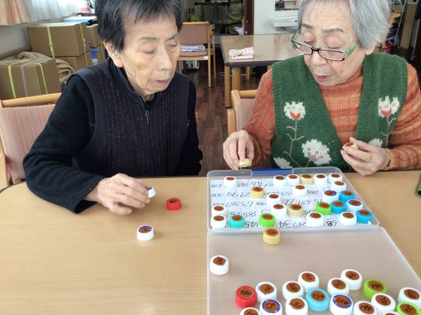 ペットボトルのキャップを紙に書かれた数字と同じものを置いていくものです
