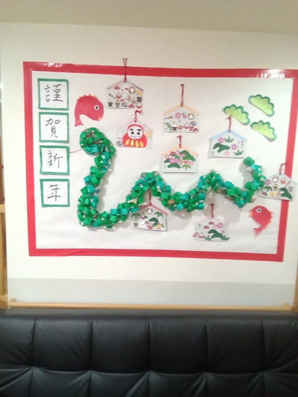 こんにちは GHみんなの家川崎新百合ヶ丘です 1Fは今年1年間同じ壁紙を使用して季節の変化に合わせて飾りを変えていくことになりました。 1月の壁紙と2月の壁紙をご覧ください。 もちろん利用者様に御協力を頂いて制作して参ります