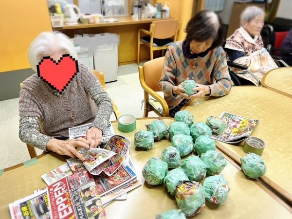 鬼の紙と広告の紙を丸めた物が沢山・・・