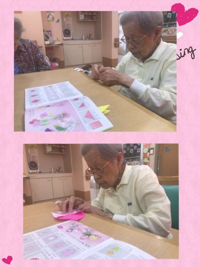 「やってみよかな^ ^」と折り紙で小さなお花を折りました!