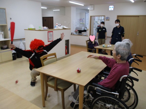振り向きその球筋の先にいたご利用者様に近づくと、静かながら連投で「鬼は~外!」と鬼めがけて投げ続きていました。