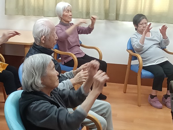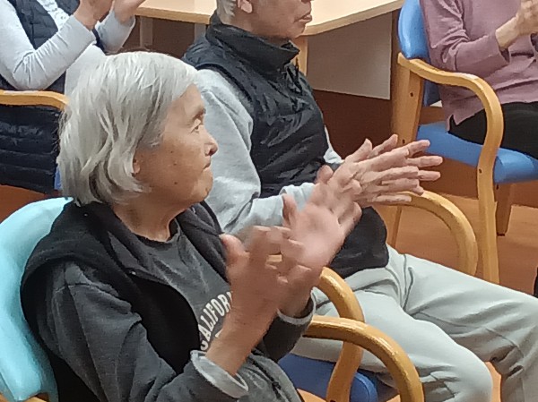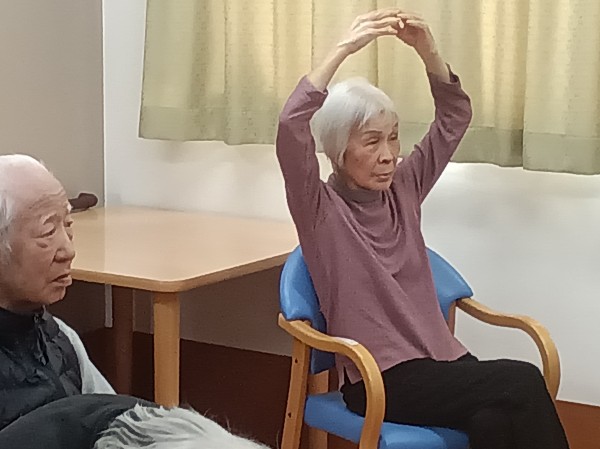 リズムに合わせて体操するって、楽しいですね。