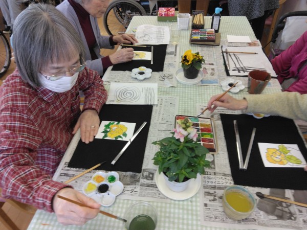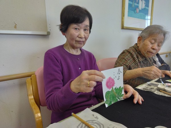 介護付き有料老人ホーム「アミカの郷流山」2月の絵手紙教室!