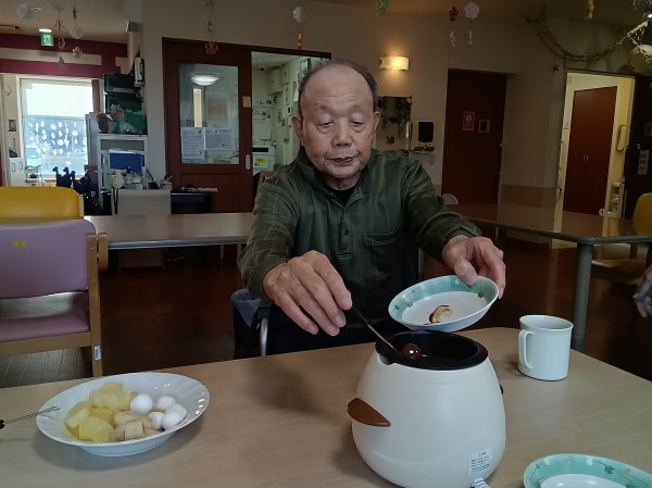 チョコレートフォンデュで食事レクです( *´艸`)