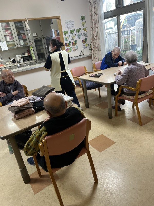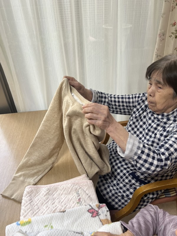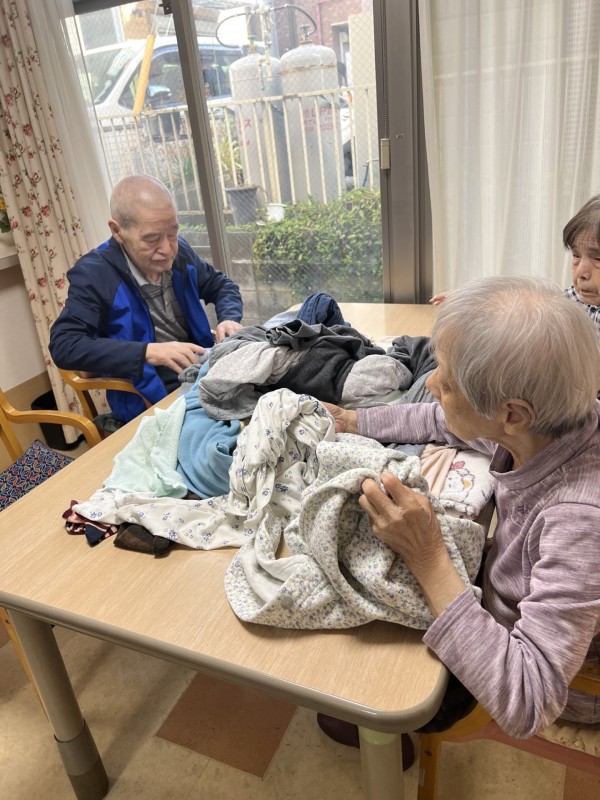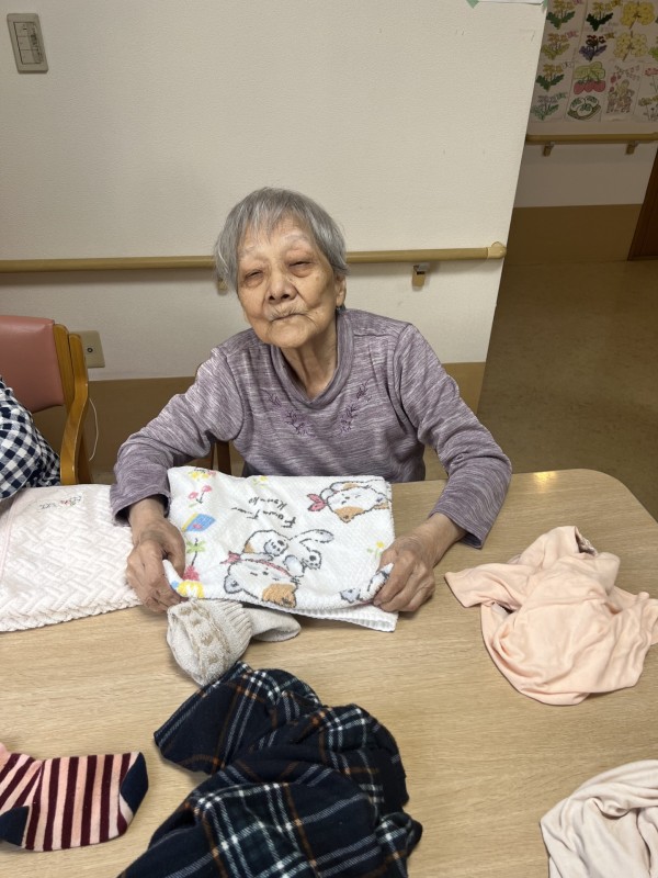 今回は1階にて朝食後に、洗濯物たたみのお手伝いをしていただきましたのでその様子をご覧ください。