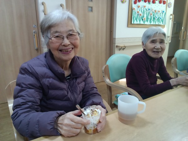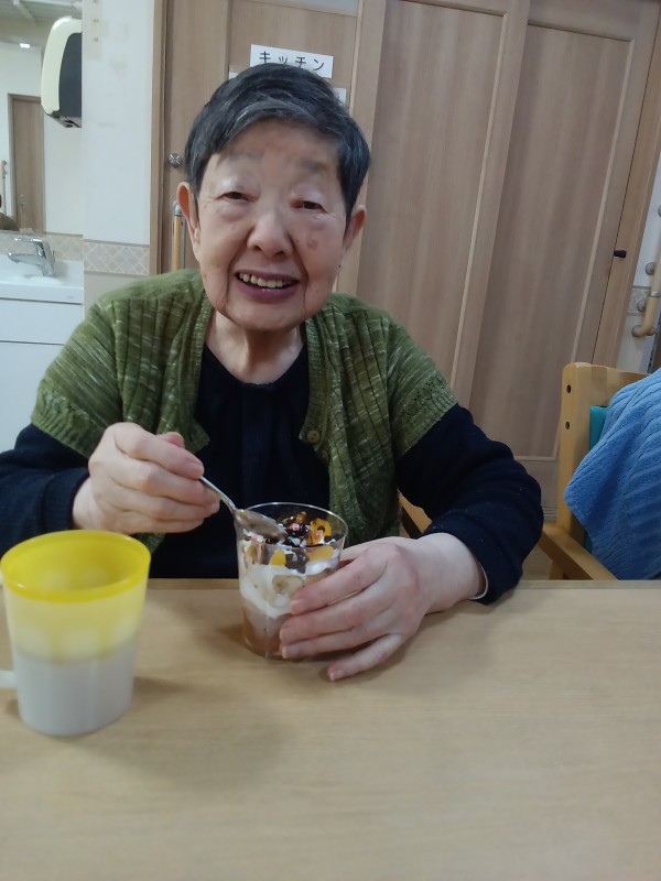 バレンタインデーも重なり、おやつはチョコレートパフェ風に作り、召し上がっていただきました。