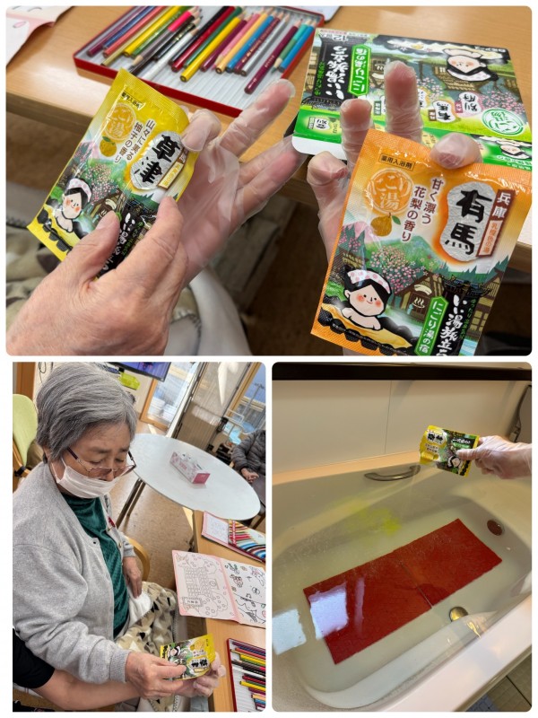 かたくり温泉に入る前にご利用者様にお好きな入浴剤を選んでいただきました♪