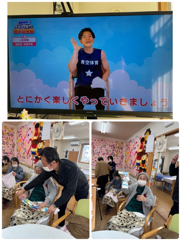 タオルを使っての体操が始まりました