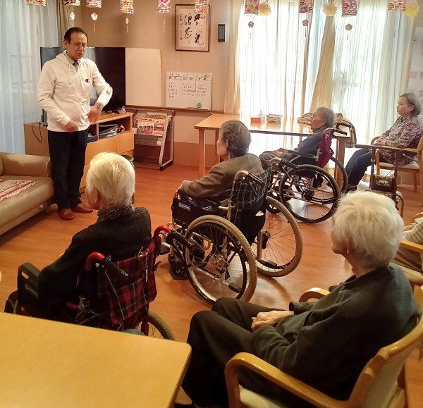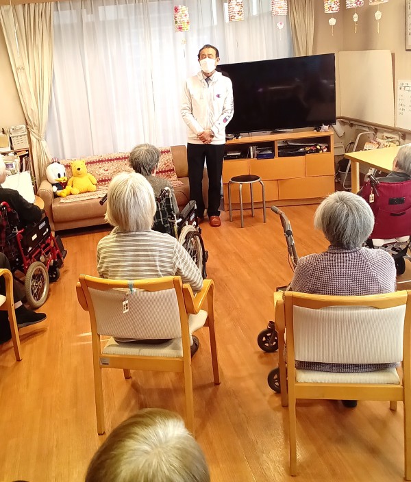 岡田先生がお越しになり 皆様と共に体操を行った様子をご紹介いたします