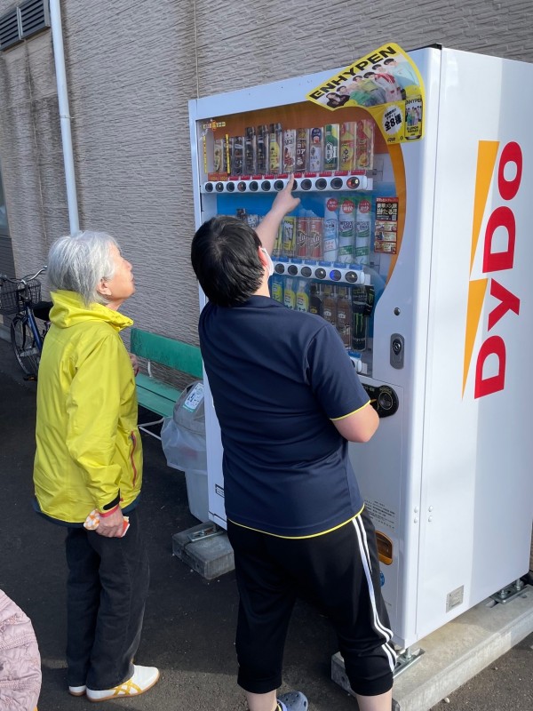 また、自販機での購入も、出来る方には一連の動作をやっていただきました。