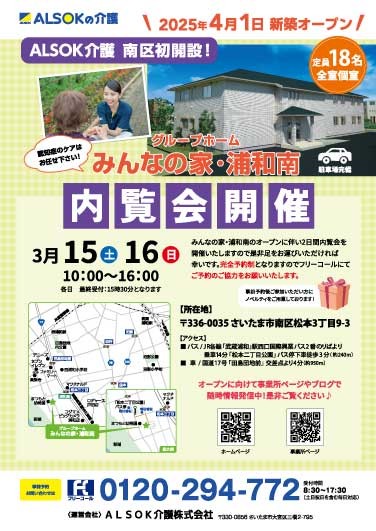 しつこいようですが、4月1日新築オープンいたします「みんなの家・浦和南」ですが、内覧会の詳細が決まりました!!