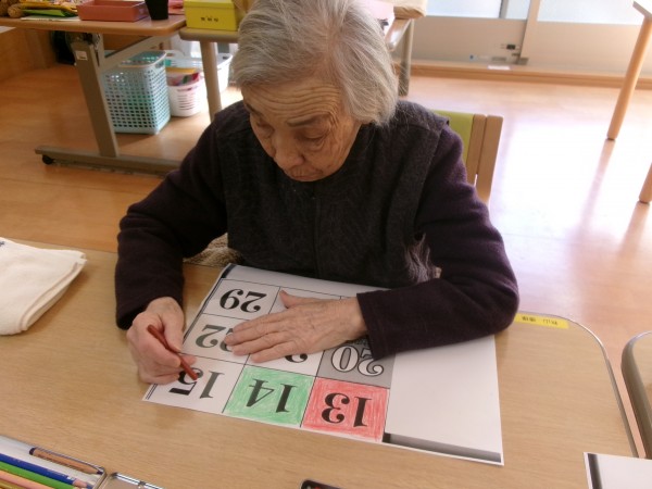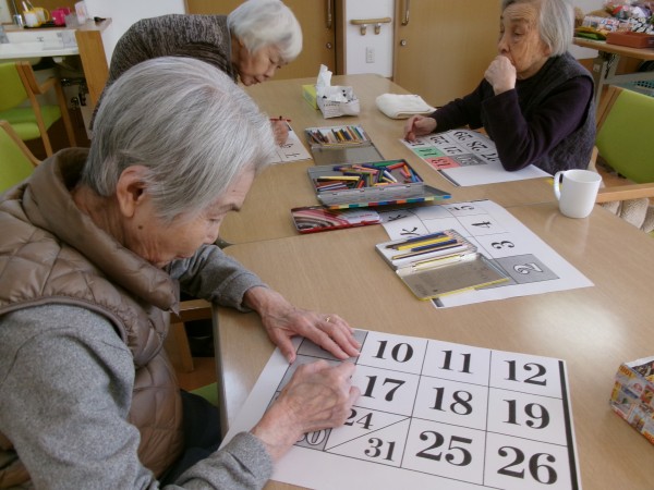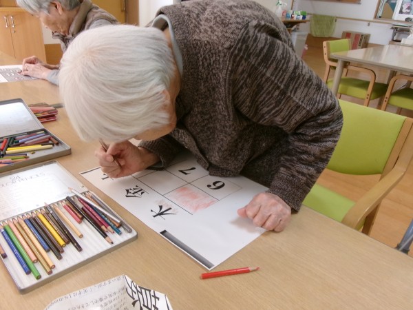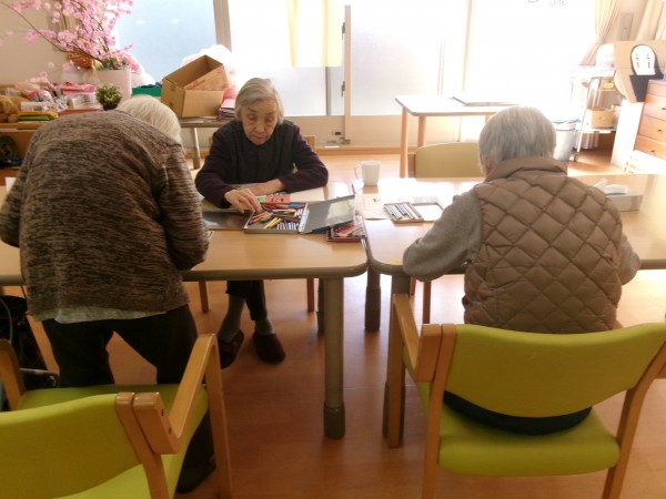 1階では3月のカレンダーをみんなで作る作業をしました。各自の好きな色でカレンダーを塗りました!