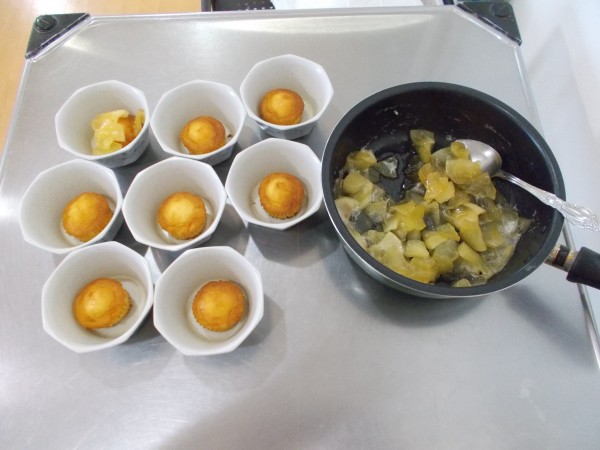 今回は「りんご煮、マフィンに乗せて」です(笑)