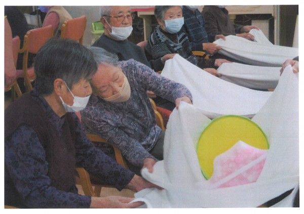 このゲームでは、腕の力・握力・バランス感覚を使うため、自然と体を動かせます。「手がプルプルしたけど、楽しかった!」と皆様笑顔でした。