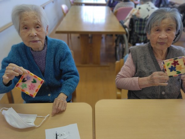 皆様とっても素敵な作品が完成し笑顔で「今回も楽しかった!」と好評なお声をいただけた創作レクリエーションのお時間でした♪