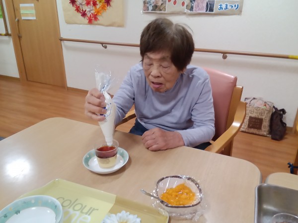 そうこうするうちにおやつの時間になり、ご利用者様にデコレーションをして頂きました。