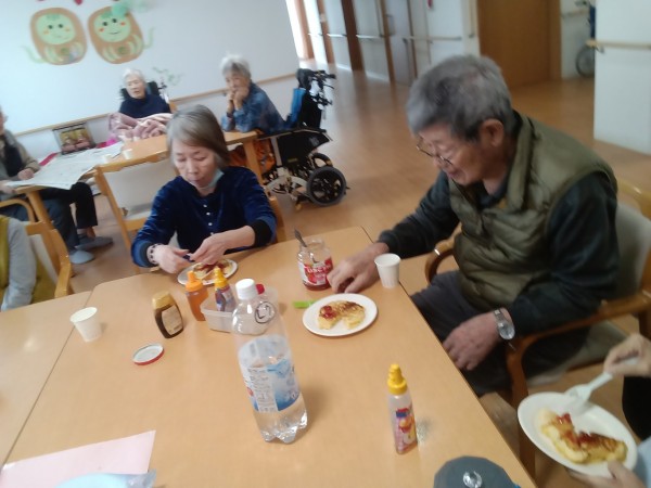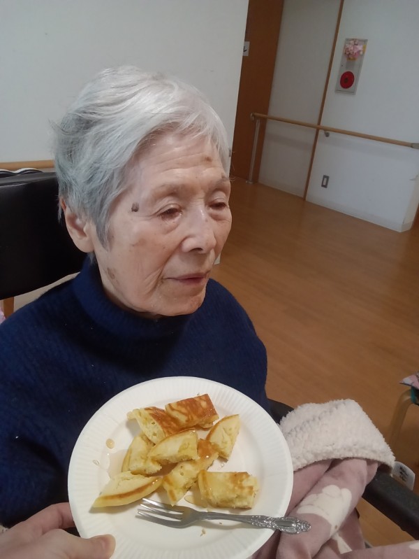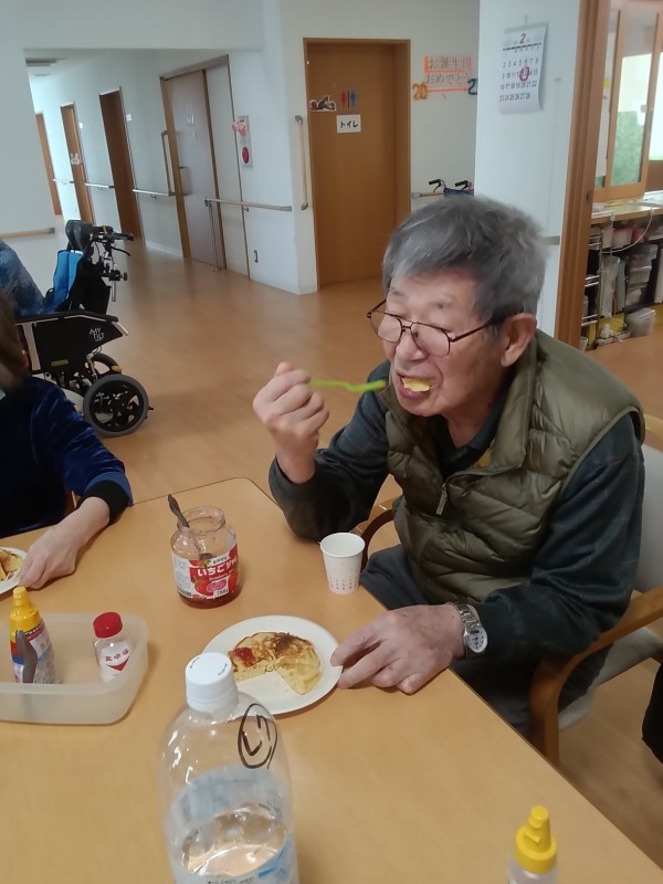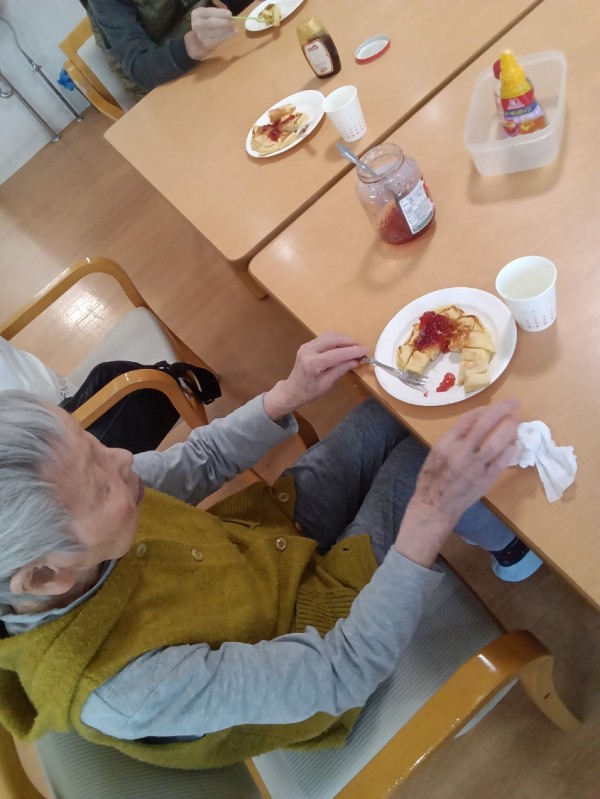 普段あまり食べないご利用者様もホットケーキとなるともりもり食べますね(笑)