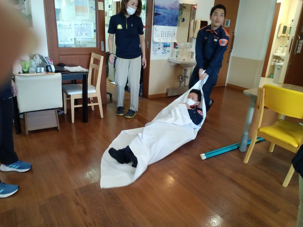 施設にあるすぐに用意できそうなシーツでも、簡易担架にできるのかと質問が上がり