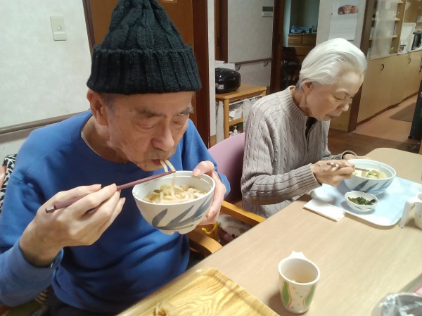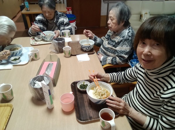 ぼくの快気祝いでホームの昼食でうどんが出ました。