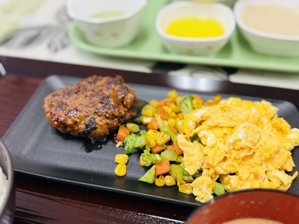 本日お誕生日の皆さまの昼食は、手作りハンバーグをご用意させていただきました♡