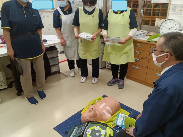 この度AEDを新調致しました。使い方等の研修に参加させて頂きました。