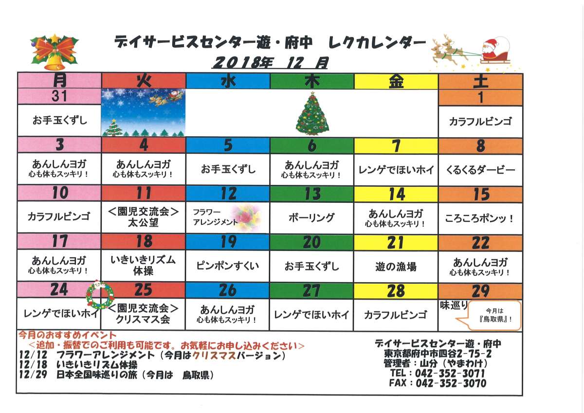 12月のレクリエーション予定をおしらせいたします。