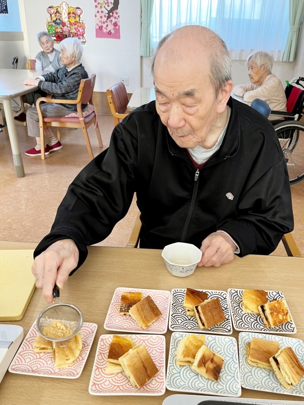 グループホームみんなの家大宮三橋 3階おやつレク♪みんなで手作りふわふわ生どら焼き