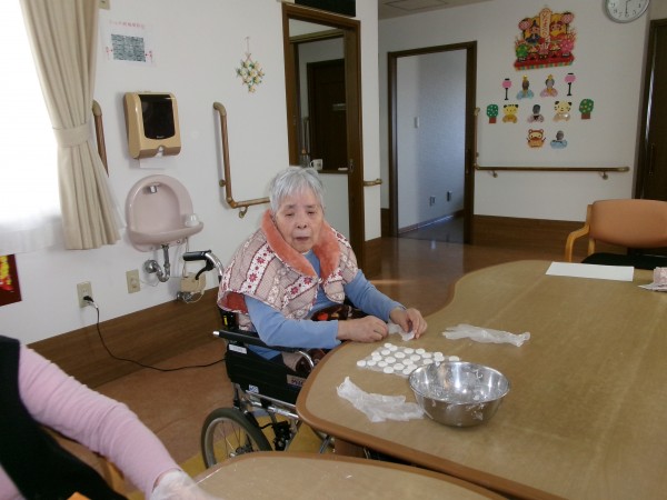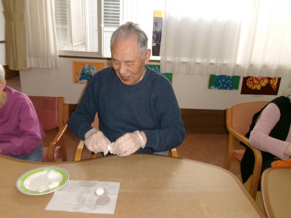 入居者様に白玉粉を丸めて頂き、いろいろな丸形が出来、