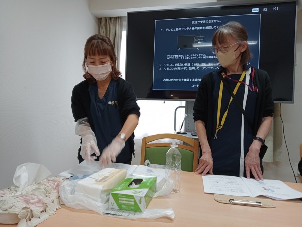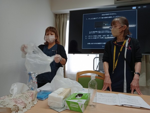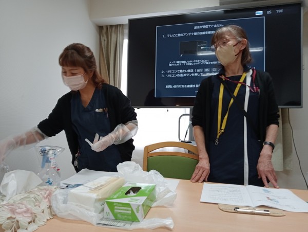 お客様を感染症から守るため、感染症対策の研修と訓練を実施しました。