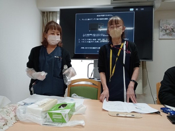 看護師より、具体的な道具を提示しながらの研修会が行われました