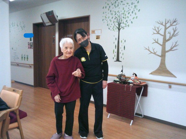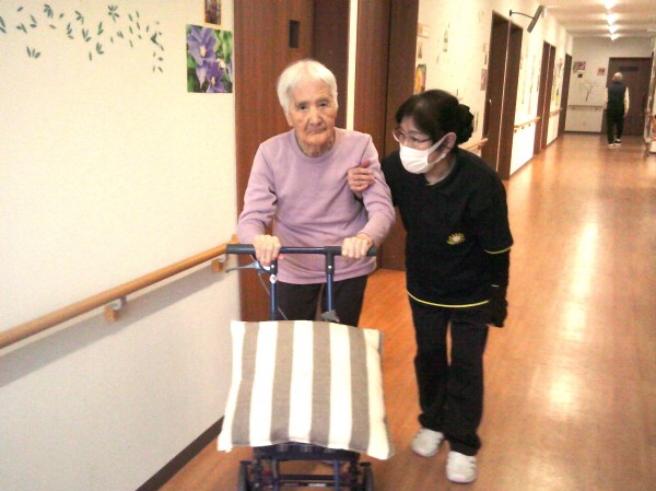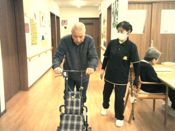 はじめにシルバーカーをして手引き歩行に切り替えていきました。歩いていたころを思い出されていきました(*^_^*)