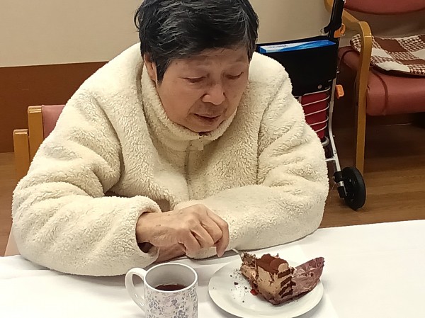 1階同様、チョコレートケーキでお祝い(=゚ω゚)ノ