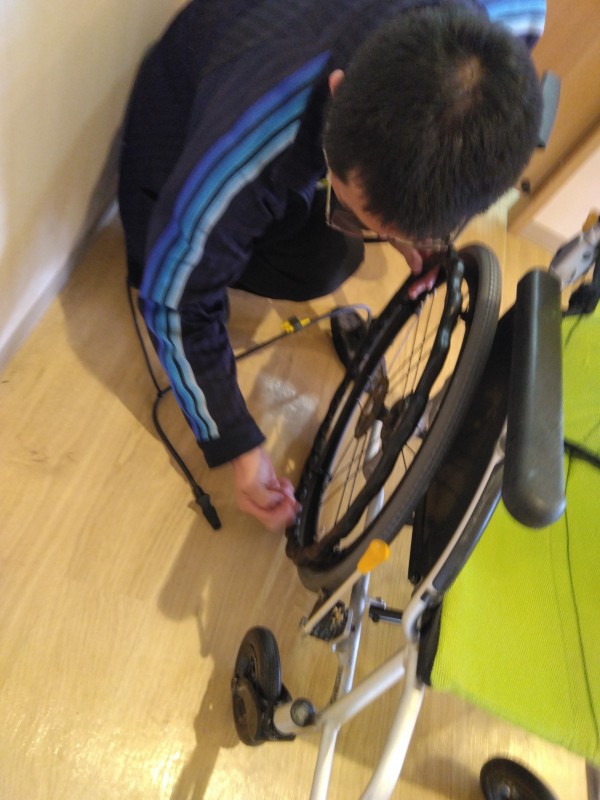 タイヤの空気が足りないとガタガタしてしまい身体に負担がかかるので