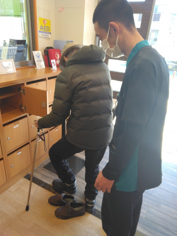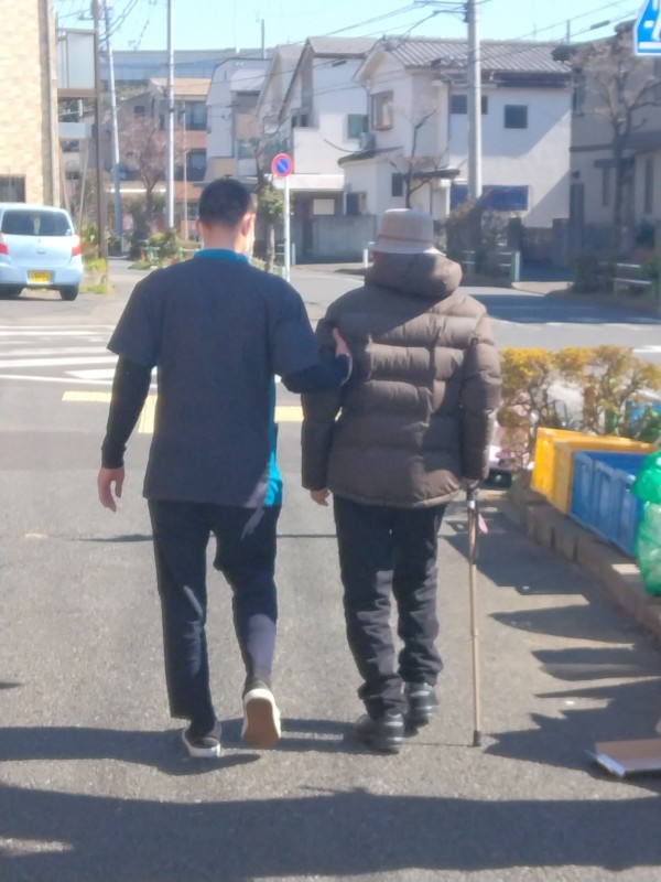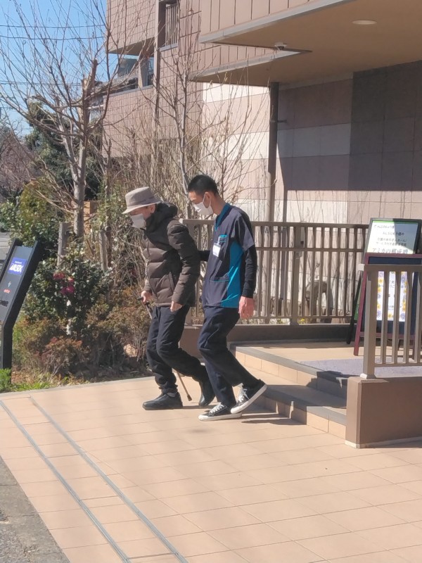 T様はいつもリハビリの先生とお散歩による歩行訓練を実施しています(#^.^#)