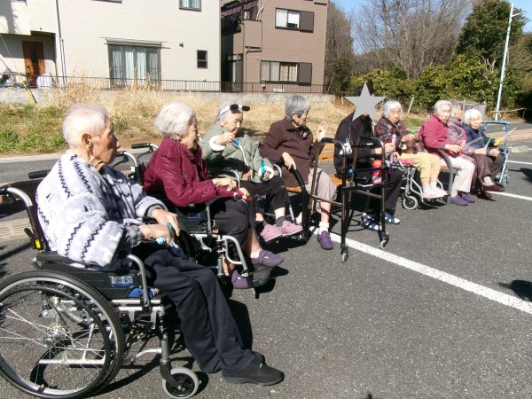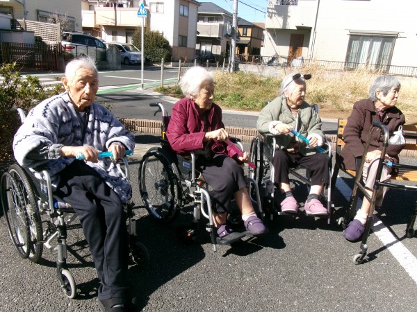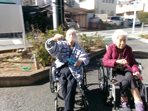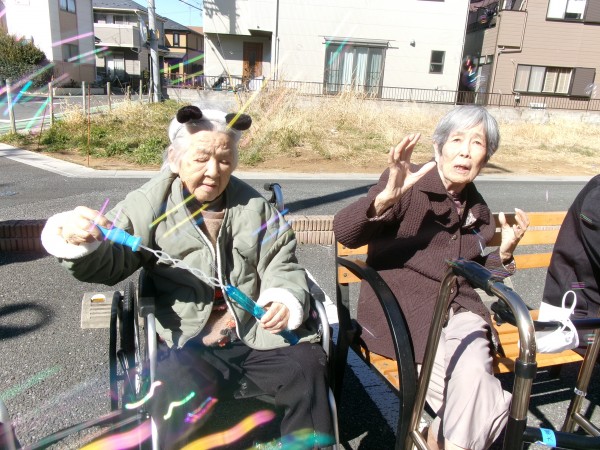 ご入居者様と外に出て、シャボン玉を作ることにしました(^o^)