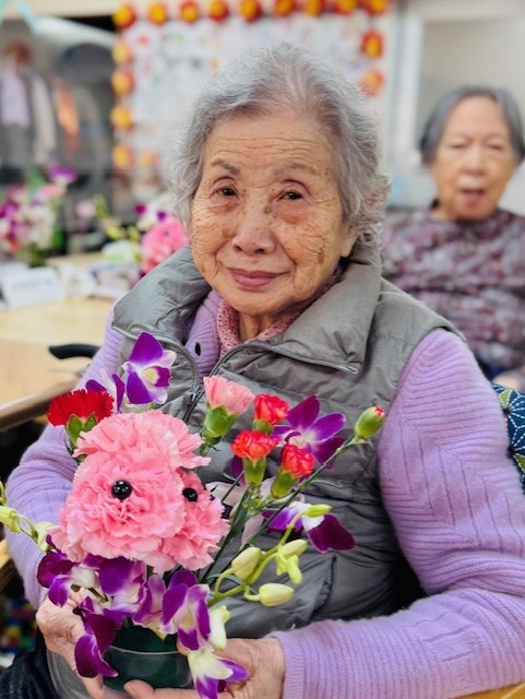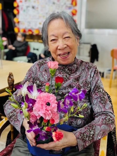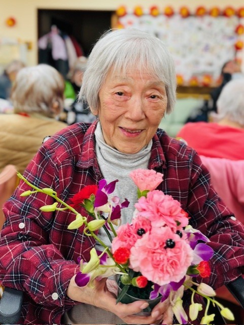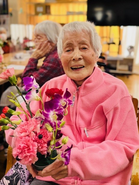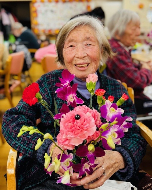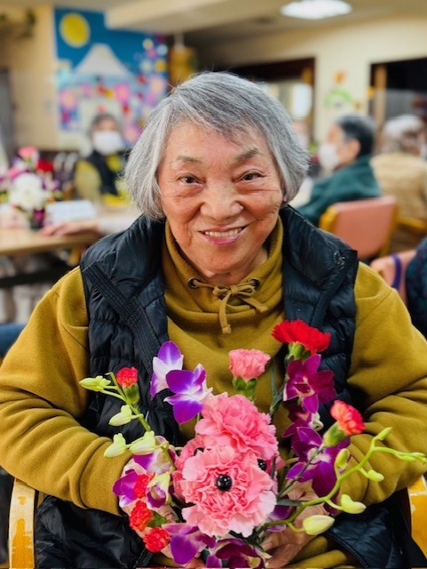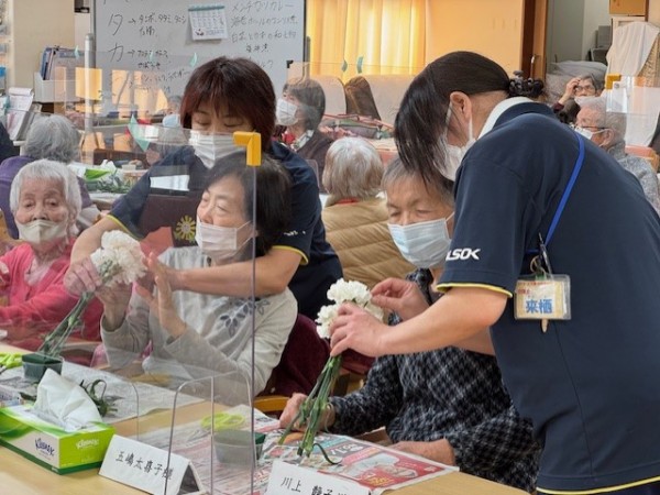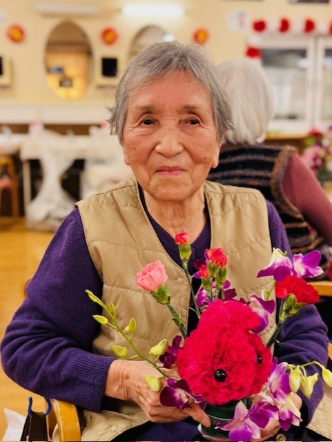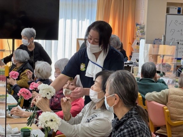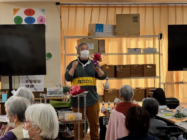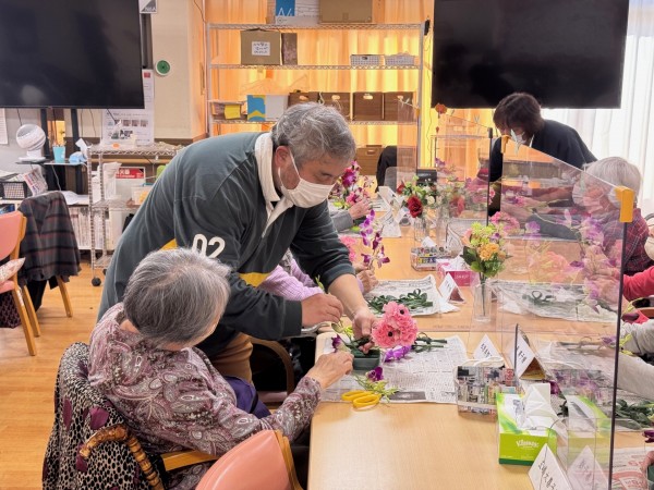 本日午後のレクリエーションは「フラワーアレンジメント教室」