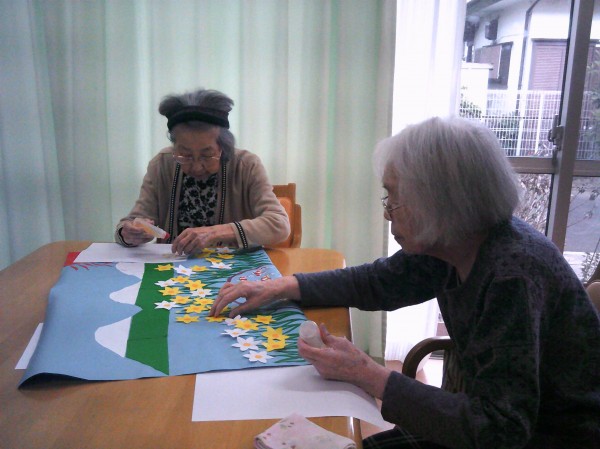 こんにちは! グループホームみんなの家・あきがせの介護ブログです! よろしくお願いいたします。 今日は水仙の貼り絵を行いました。そのご様子をお知らせいたします。
