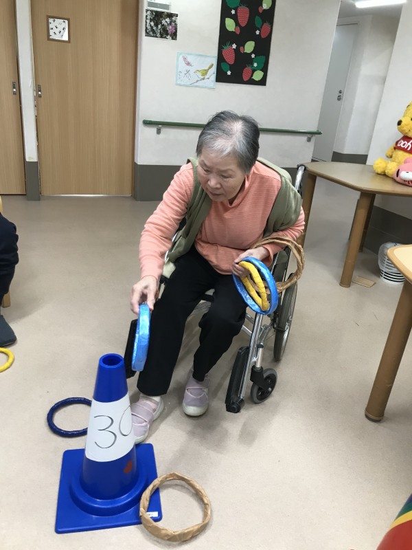 今日は、2階の皆さまと輪投げしました(^^♪ 我こそは(^o^)/と身体を乗り出して、もうすぐそこに手が('◇')ゞ ちょっと賢く入れようかしら(;^_^A
