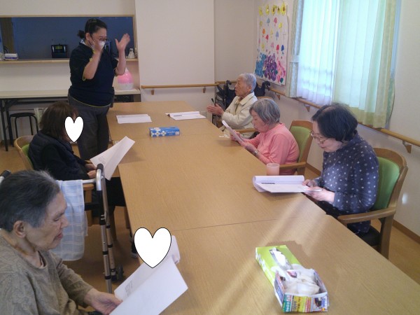 夕ご飯前の声出しの歌レクを行い入居者様楽しまれておりました(^_-)-☆
