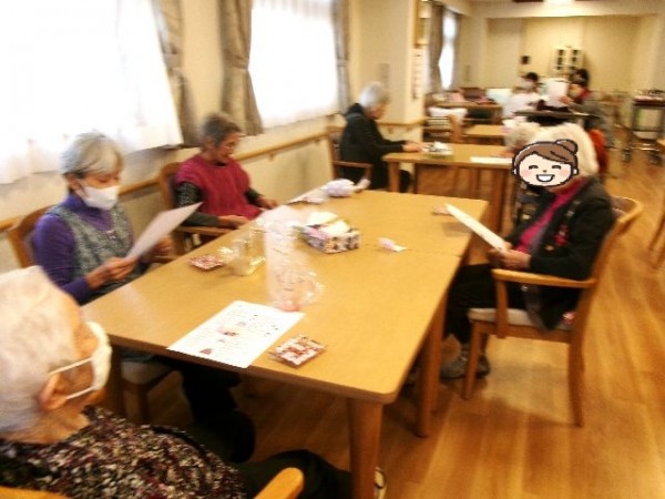 事前にやり方を説明して入居者様に箱に入っている数字が書かれた紙をひいてもらいました(^^♪