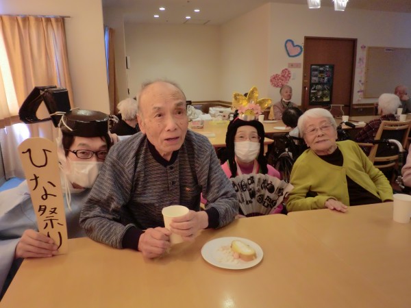 今回はお茶会のような形とさせていただき、職員仮装によるお雛様・お内裏様とお写真撮りながら歓談していただきました!