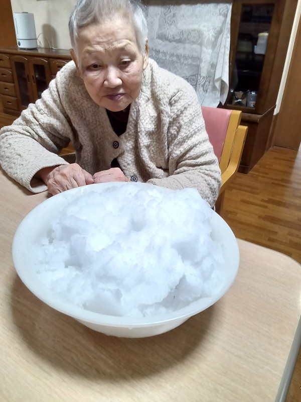 外では雪が降っていたので、洗面器に入れて皆で触りました。