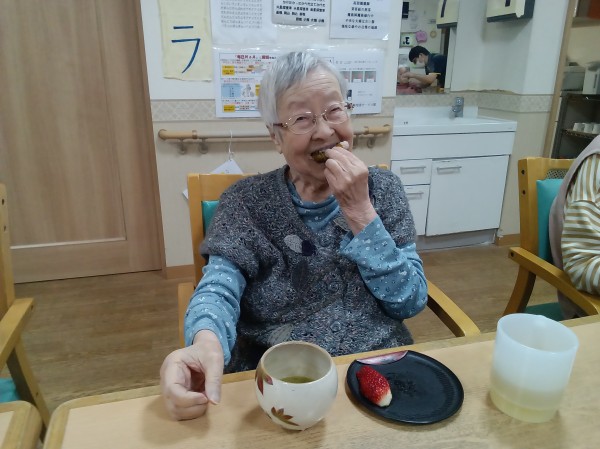 おやつには「桜餅」と「お抹茶」を召し上がりました。