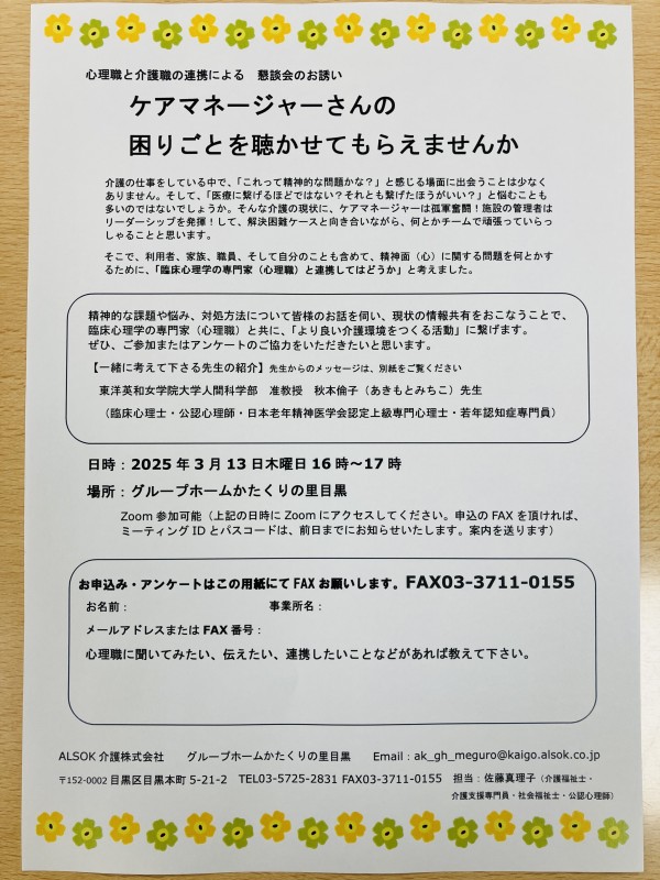 かたくりの里・目黒☆★☆ケアマネ懇談会のお知らせ☆★☆