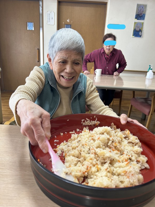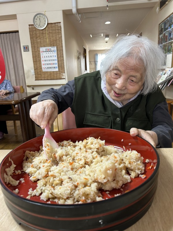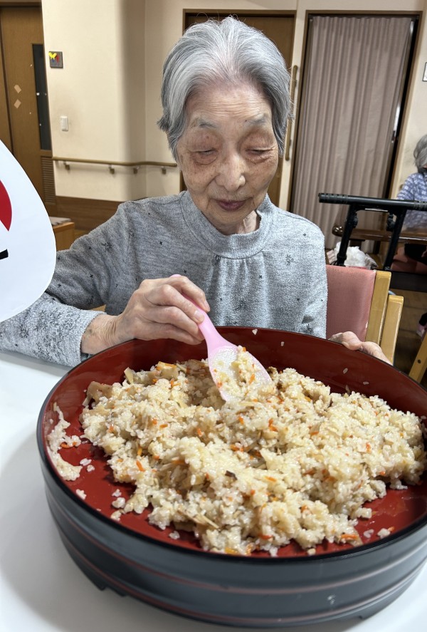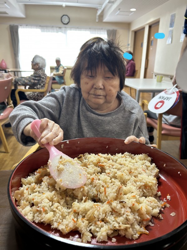 「人参やしいたけなどが入っていてご飯が美味しそうです。早く食べたいですね。」と嬉しそうに仰られました。