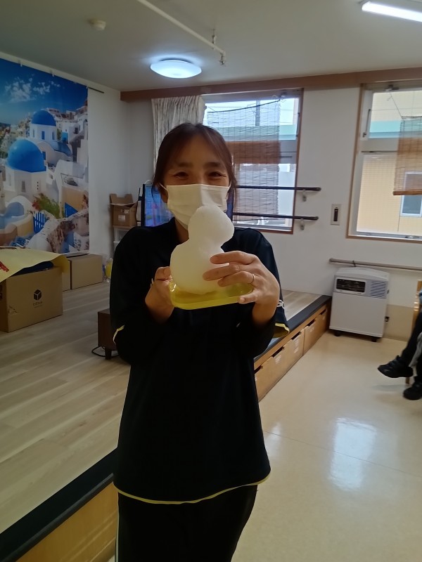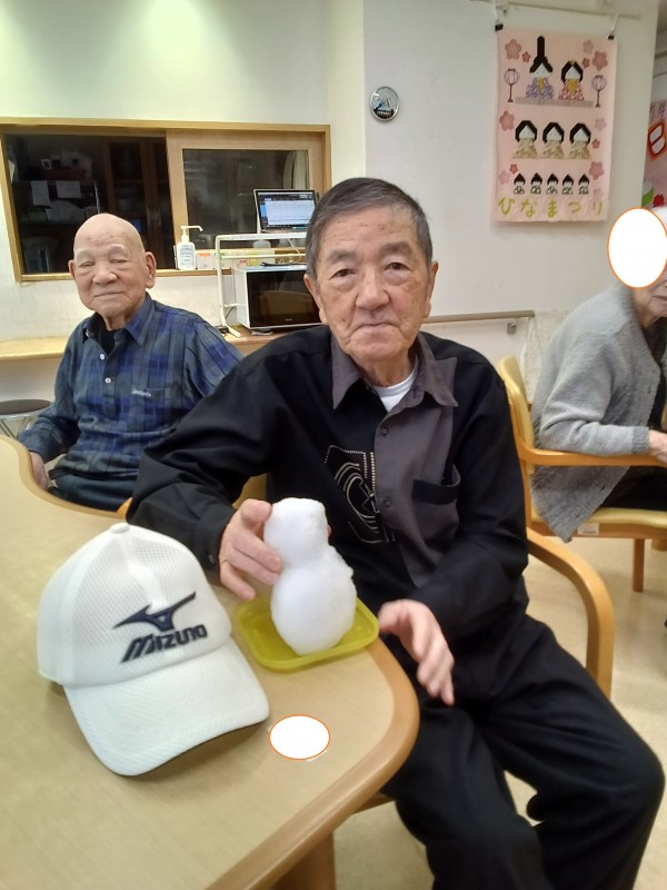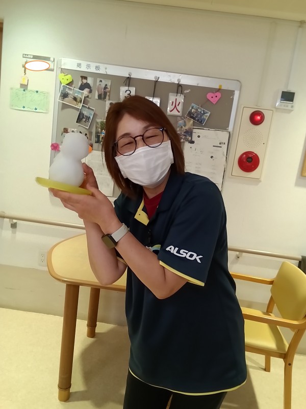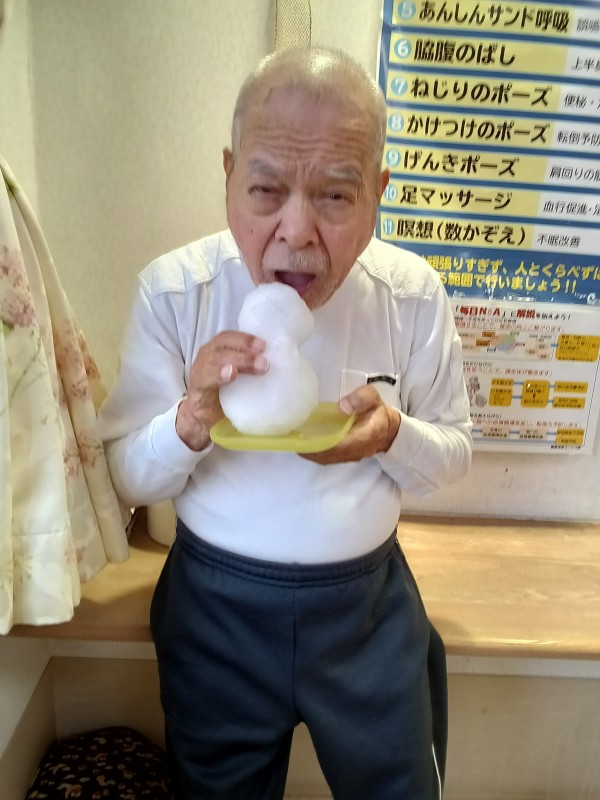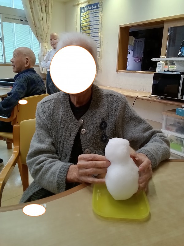 早速、職員が庭に出て雪ダルマ作りを始めました♡