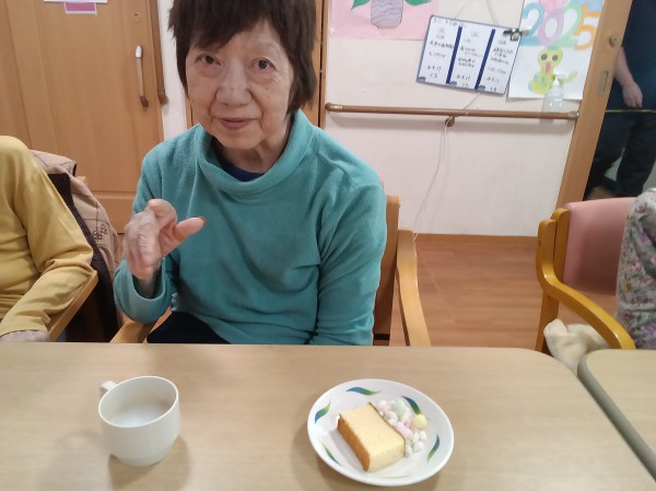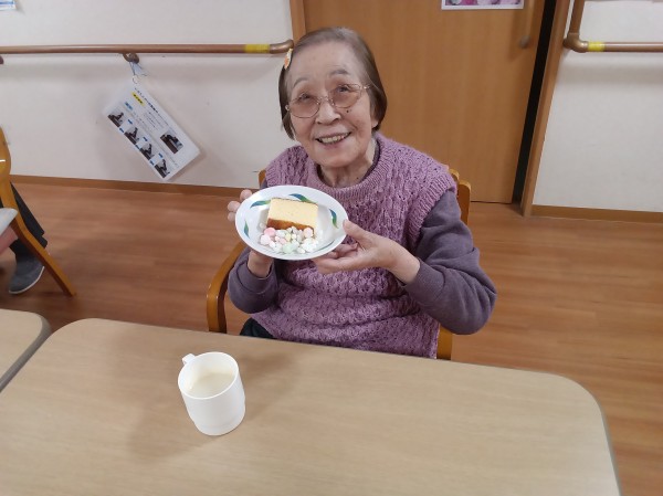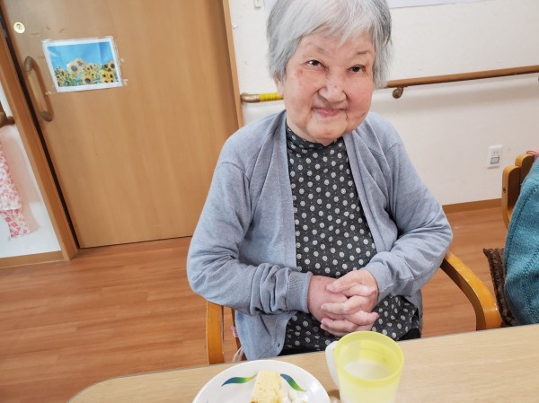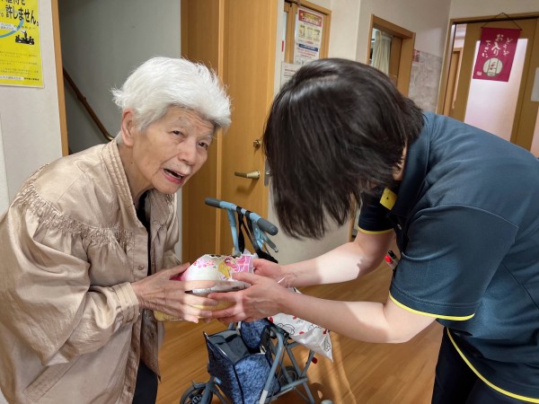 と素敵な笑顔でケアスタッフに購入されたお菓子を渡してくださいました。